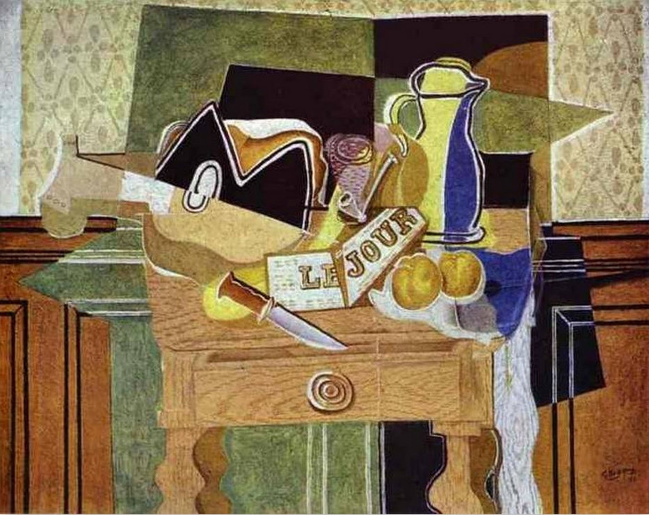 Для творческого задания нам было предложено познакомиться с коллажами, создаными Пикассо и Ьраком в технике символический кубизм. Они были первыми, кто сделал коллаж произведением искусства. Меня коллаж очень интересует, потому что именно через него я вновь начала рисовать. Но коллаж в стиле кубизма - это не так просто. Потому выделила для себя основные черты этой техники у Пикассо и Барка: